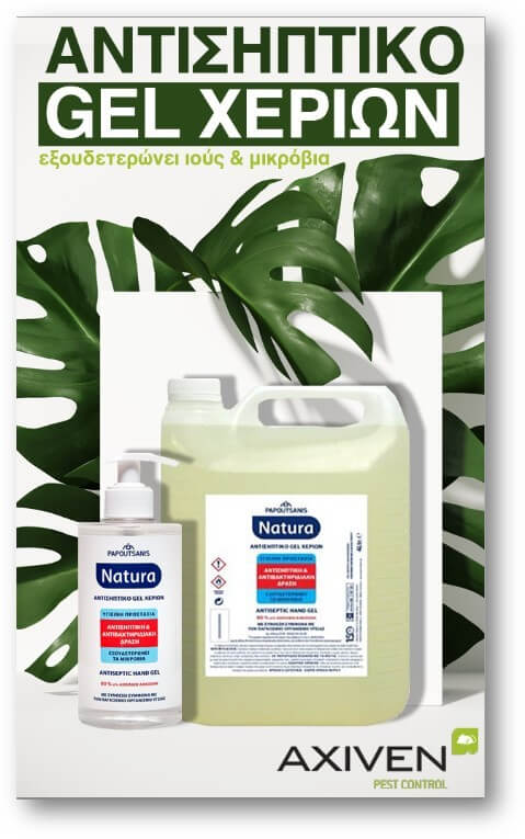 • Αντισηπτικό gel χεριών (ΑΔΕΙΑ ΕΟΦ, 80% v/v αιθυλική αλκοόλη, χωρίς χρήση νερού, στεγνώνει γρήγορα)
